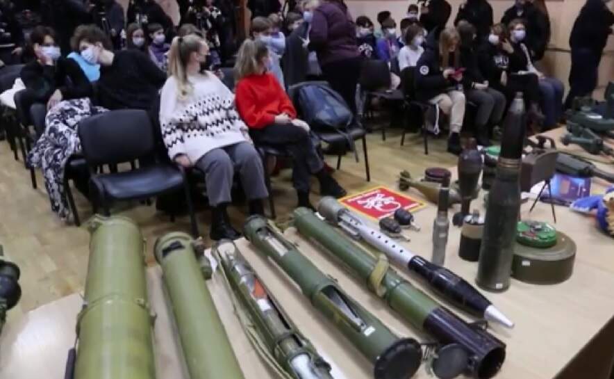 O possível conflito entre Ucrânia e Rússia está fazendo o governo ucraniano começar um processo de preparação para os possíveis ataques que poderá sofrer. Uma dessas medidas é a implementação de treinamentos para crianças nas escolas sobre ameaças de bombas.
