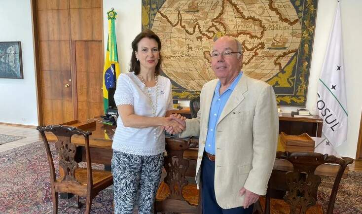De acordo com o Itamaraty, Vieira e Mondino “discutiram também aspectos da relação bilateral e o atual estágio das negociações Mercosul-UE”, conforme post na rede social X.