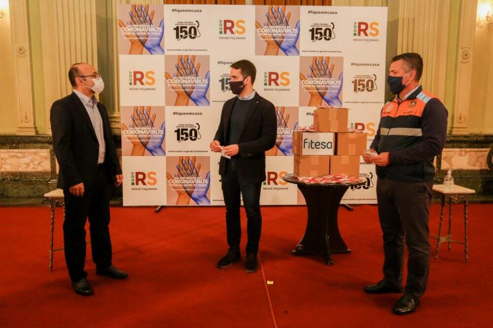 Do montante, cerca de 218 mil máscaras foram entregues ao Governo do Estado, Defesa Civil do RS e Secretaria da Governança e Gestão Estratégica nesta última terça-feira (07), em cerimônia que contou com a presença do governador, Eduardo Leite, e do coordenador da Defesa Civil e chefe da Casa Militar, coronel Júlio César Rocha Lopes.