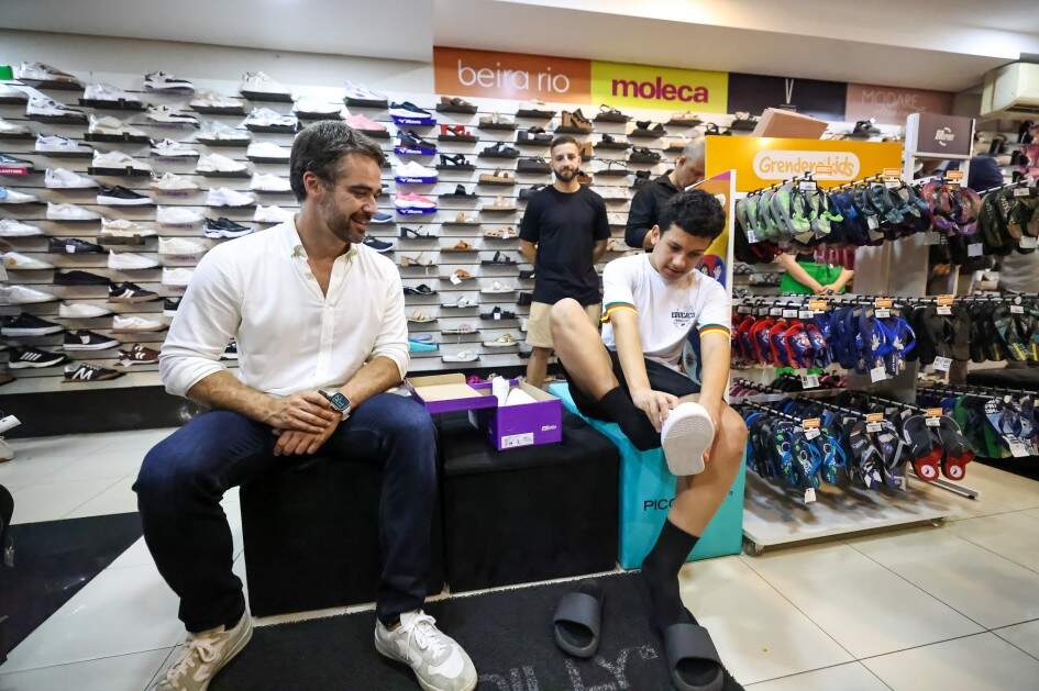 “Na manhã desta segunda-feira, estive no Instituto de Educação Flores da Cunha para acompanhar de perto a entrega dos primeiros cartões do programa Pé no Futuro. Uma iniciativa simples e direta: R$ 150 para estudantes inscritos no CadÚnico comprarem tênis e meias e começarem o ano letivo com mais dignidade. Fiz todo o percurso junto com o Diogo, da retirada do cartão até a chegada a uma loja do Centro de Porto Alegre para escolher um tênis novinho. Caminhar ao lado dele, vendo cada etapa acontecer, mostra como a política pública chega onde realmente importa: na vida real das pessoas. Conversei com o Diogo e com a mãe dele, a Renata, sobre a diferença que esse apoio vai fazer no dia a dia. Não é só um calçado. É conforto, é segurança, é incentivo para seguir frequentando a escola com mais confiança. Sem esse lance de zigue-zague, de esquerda para direita. O que importa é seguir em frente”, declarou o governador.