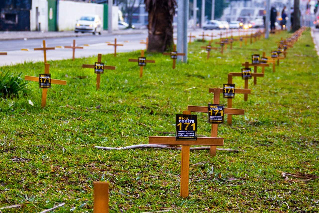 Cento e setenta e uma cruzes foram colocadas na manhã desta segunda-feira (29) no canteiro central da avenida Padre Cacique, em frente à Fase (Fundação de Atendimento Sócio-Educativo), em Porto Alegre, em um ato contra a redução da maioridade penal, promovido pelo Instituto Tolerância.