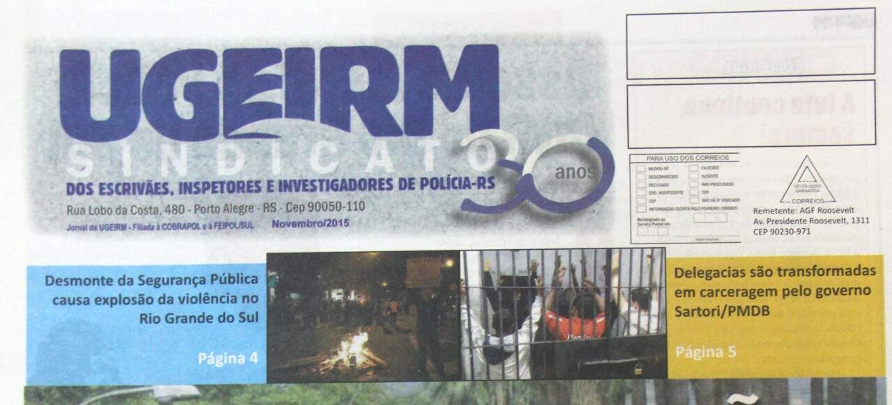 Conforme Isaac Ortiz, presidente da Ugeirm (sindicato que atende escrivães, inspetores, agentes e investigadores), o jornal conta com o apoio de muitas entidades. “Criamos esse meio de comunicação para os gaúchos para alertarmos sobre os problemas que estamos enfrentando, o descaso do governo com a segurança pública. No jornal é possível verificar dados sobre violência por regiões do Brasil, sistema prisional, situação do Corpo de Bombeiros, parcelamento de salários, entre outros assuntos. O jornal é em prol da comunidade. Precisamos reagir a essa onda de violência”, destacou.