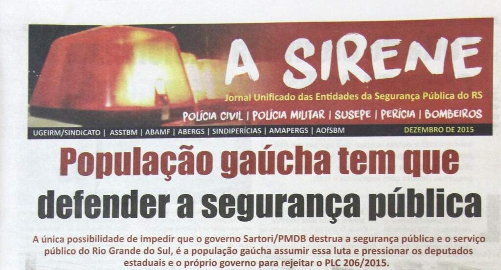 Polícia Civil, bombeiros, Brigada Militar, Susepe (Superintendência dos Serviços Penitenciários) e entidades ligadas à segurança pública do Rio Grande do Sul lançaram o jornal A Sirene. O objetivo é pontuar os problemas que atingem o Estado e procurar esclarecer a população.