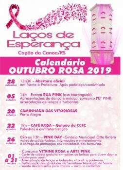 OAB, Sapatinho Rosa, Acqua Lokos Parque Hotel e mais 18 instituições estão fortemente engajadas para a diminuição dos números de câncer de mama no Estado. As entidades se reunirão nesta quarta-feira (21), na Câmara de Vereadores de Capão da Canoa, às 17h30min. O encontro é aberto ao público e tem entrada gratuita. Uma das pautas será a apresentação do cronograma da campanha para o Outubro Rosa, Laços de Esperança, que pretende através de uma série de atividades conscientizar a comunidade – especialmente as mulheres, para o cuidado com a sua saúde e a importância da realização de exames preventivos da mama.