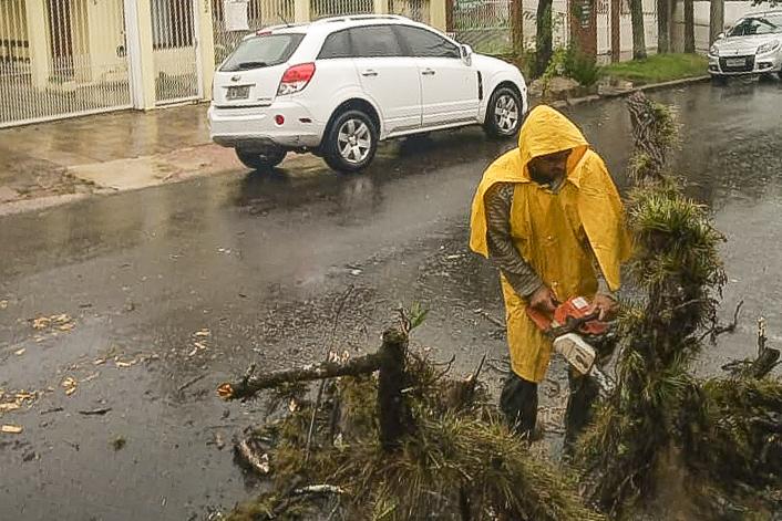 Até as 18h, foram registrados pelo menos 15 casos envolvendo quedas de árvores ou galhos, em atendimento pelas EMA (Equipes de Manejo Arbóreo) da SMSUrb. Equipes de zeladoria urbana do DMLU, também atuaram na limpeza e no recolhimento de lixo espalhados pelo evento climático.