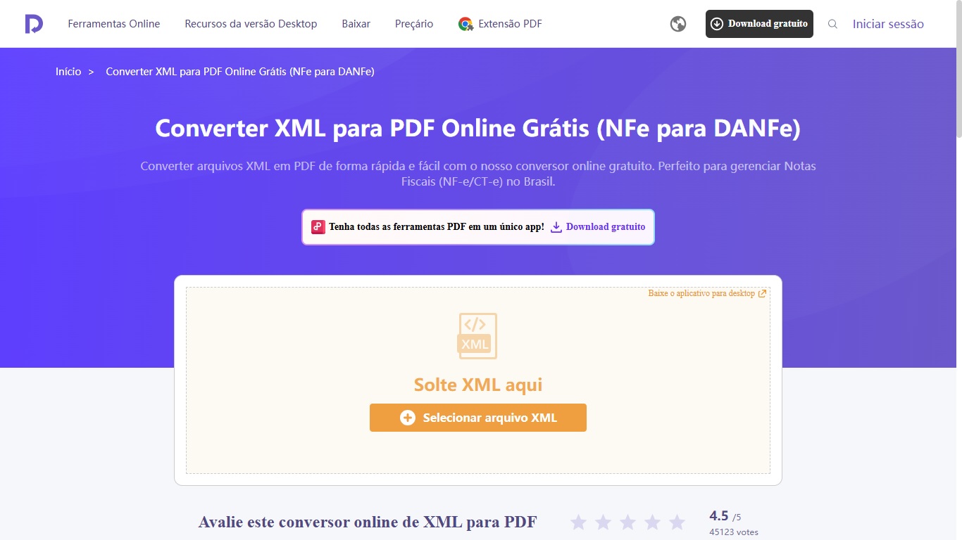 Ferramentas online são práticas, mas nem sempre adequadas. Muitas não entendem a estrutura do XML e apenas inserem os dados no PDF.