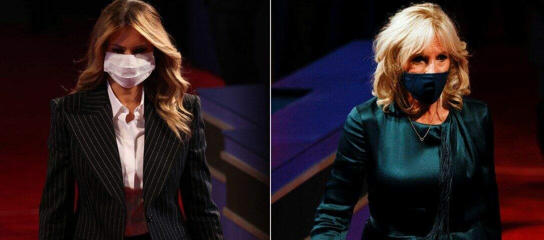 Sentadas na primeira fila, assistindo de perto ao confuso primeiro debate presidencial das eleições americanas de 2020, a primeira-dama Melania Trump e a ex-vice-primeira-dama Jill Biden apresentaram estilos diferentes nos looks do encontro.