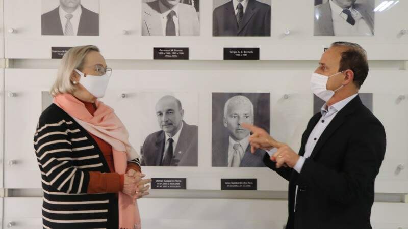 Foto: Marília Bissigo/Divulgação SESA secretária Arita Bergmann recebeu nesta quinta-feira (17) o prefeito de Garibaldi, Antonio Cettolin. O objetivo foi debater uma demanda para a Serra Gaúcha: a manutenção dos dez leitos de UTI (Unidade de Tratamento Intensivo) no Hospital Beneficente São Pedro após a pandemia da Covid-19.