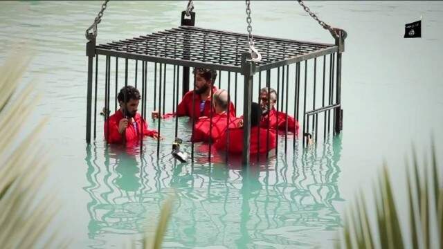 O grupo apresenta os 16 “espiões” em túnica laranja, identificados e que falam brevemente em frente à câmera. Eles são executados em três grupos, um método que ainda não havia sido utilizado publicamente pelo EI. Cinco homens são trancados em uma jaula de aço, que é levantada do chão para ser imersa em uma grande piscina onde seu afogamento é filmado por duas câmeras à prova d’água amarradas nas grades da gaiola. Outro grupo de quatro homens é colocado em um carro que foi destruído por um tiro de lança-foguetes. Sete outros são decapitados pela explosão de um cabo amarrado em seus pescoços, de acordo com as imagens do vídeo.