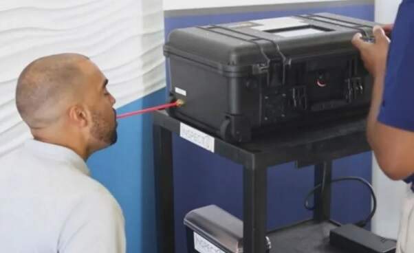 Segundo a agência, o bafômetro usa uma técnica chamada “espectrometria de massa de gás de cromatografia gasosa (GC-MS)” para separar e identificar misturas químicas e detectar rapidamente cinco compostos orgânicos voláteis (COVs) associados à infecção por SARS-CoV-2 na respiração exalada. Quando o bafômetro detecta a presença de marcadores VOC de SARS-CoV-2, um resultado de teste positivo presuntivo (não confirmado) é retornado e deve ser confirmado com um teste molecular.
