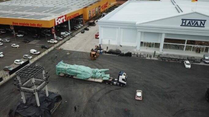 Agora, a estátua será instalada em frente à megaloja. A construção da Havan de Canoas segue em ritmo acelerado. A unidade contará com mais de nove mil metros quadrados, estacionamento amplo, praça de alimentação e cerca de 350 mil itens de diversos setores.