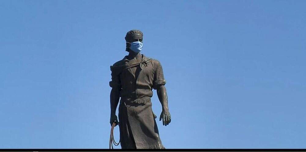 A estátua do Laçador, localizada na Zona Norte de Porto Alegre, ganhou no domingo (20) uma máscara, item usado para evitar a contaminação contra a Covid-19. A responsável pelo ato é a costureira Samanta Almeida.