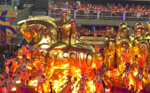 Por aqui, a polêmica dos monumentos também não vem de hoje. Em 2019, o desfile histórico da Mangueira levou à Sapucaí uma réplica do Monumento às Bandeiras coberto com o sangue indígena e com palavras como “ladrões” e “assassinos”. Três anos antes, a escultura original, no Parque do Ibirapuera, amanheceu coberta de tinta, tal qual a estátua de Manuel de Borba Gato, também na capital paulista.