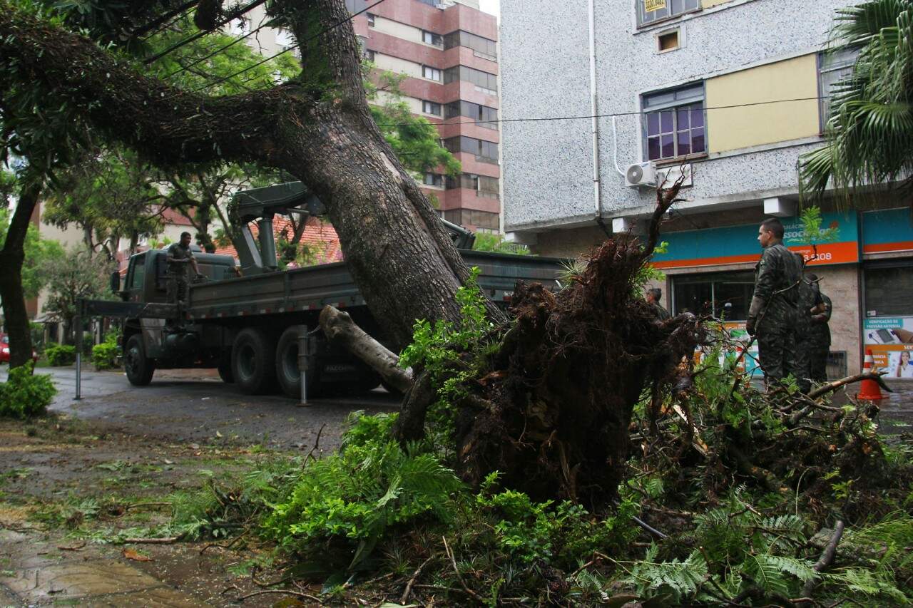 Porto Alegre, 01/02/2016 – Equipes do DMLU e SMAM, com apoio do Exército Brasileiro trabalham na limpeza e remoção das ávores que caíram durante o forte temporal da última sexta-feira. FOTO: LUCAS UEBEL