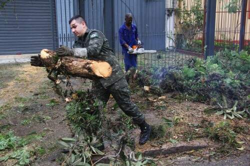 Porto Alegre, 01/02/2016 – Equipes do DMLU e SMAM, com apoio do Exército Brasileiro trabalham na limpeza e remoção das ávores que caíram durante o forte temporal da última sexta-feira. FOTO: LUCAS UEBEL