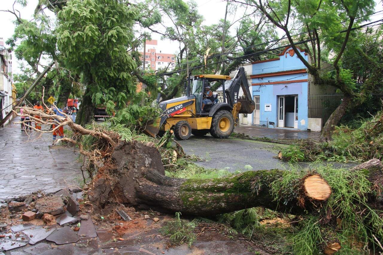 Porto Alegre, 01/02/2016 – Equipes do DMLU e SMAM, com apoio do Exército Brasileiro trabalham na limpeza e remoção das ávores que caíram durante o forte temporal da última sexta-feira. FOTO: LUCAS UEBEL