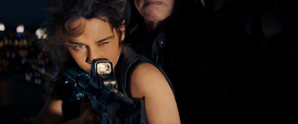 Da mocinha vivida por Linda Hamilton na produção de 1984, Sarah é transformada logo de cara em guerreira. E Emilia encara muito bem o desafio. O filme até faz uma piada com o tamanho dela, mas a atriz prova que baixinhas também sabem lutar. Por isso mesmo, a histeria da personagem no ato final soa tão deslocada. Esse não é o único furo do roteiro.