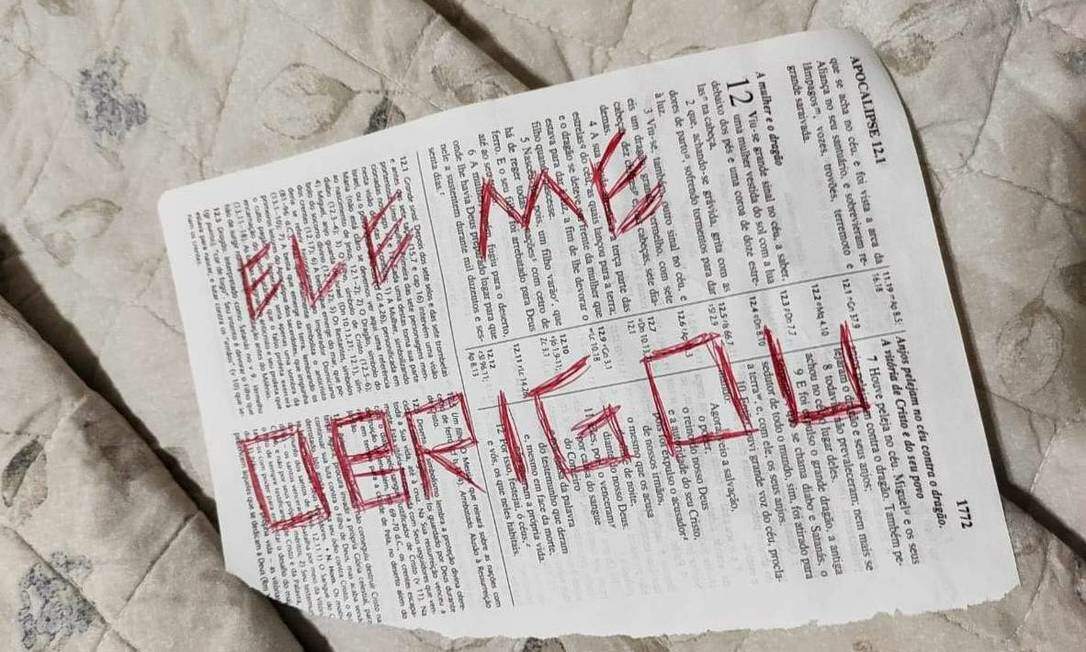 Uma Bíblia com mensagens foi encontrada no local do crime. (Foto: Reprodução)
