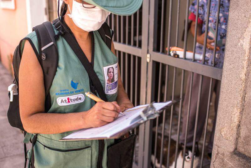 As equipes foram treinadas, e os profissionais estão identificados com colete e crachá com foto e um QR Code que pode ser scaneado.