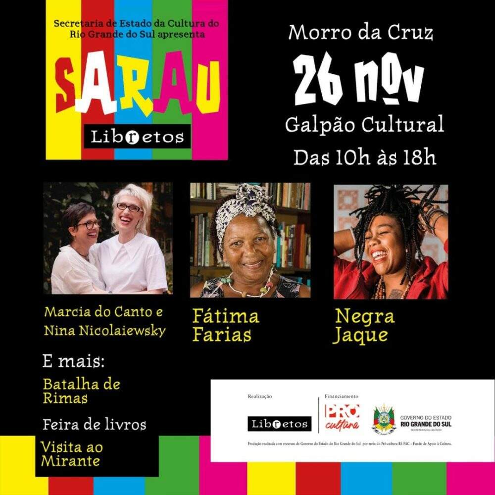 Com Negra Jaque, Fátima Farias, Marcia do Canto e Nina Nicolaiewsky. E ainda: Batalha de Rimas, Feira do Livro e Visita ao Mirante