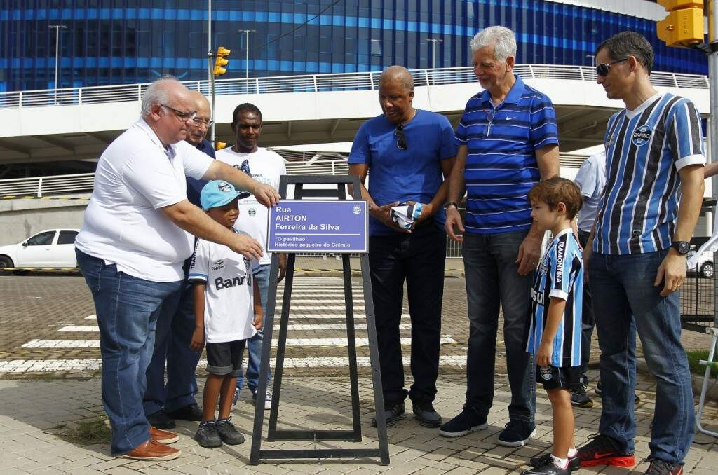 Um evento na manhã deste domingo (24) marcou o descerramento da Rua Airton Ferreira da Silva, o Pavilhão, em Porto Alegre. O ex-zagueiro gremista foi homenageado tendo o seu nome colocado na via, que está localizada no entorno da Arena e do condomínio Liberdade.