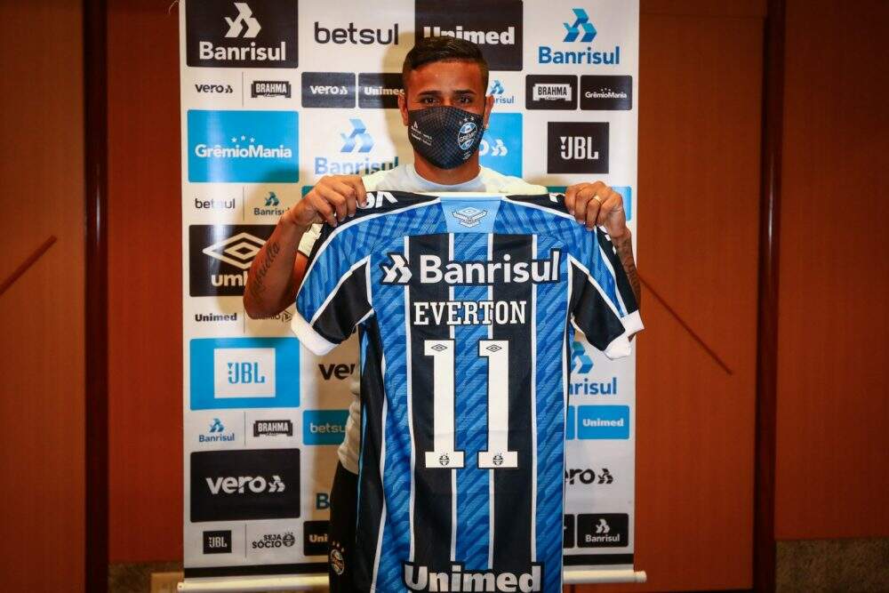 Após a partida da noite desta quarta-feira (19) contra o Flamengo, ainda no Maracanã, o Grêmio apresentou oficialmente o meia-atacante Éverton, novo reforço anunciado nessa semana, vindo do São Paulo. Já integrado ao grupo, o jogador vestirá a camisa 11 e depende somente da inscrição na CBF para ficar à disposição para o jogo do final de semana, contra o Vasco. O meia chega ao Grêmio com contrato até dezembro de 2022, após uma troca com o tricolor paulista por Luciano.