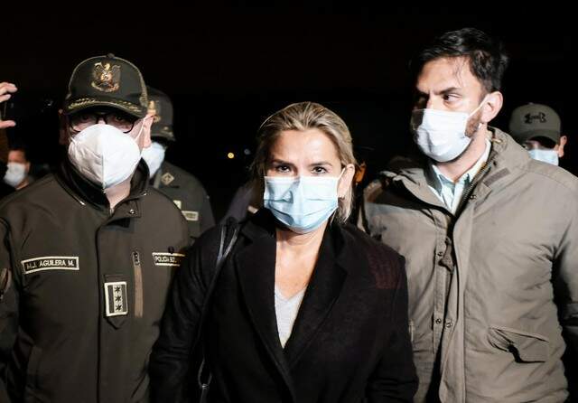 A ex-presidente, que é acusada de crimes de sedição, terrorismo e conspiração e de envolvimento na derrubada do governo de Evo Morales em 2019, foi presa no em 13 de março. Policiais a encontraram escondida dentro de uma cama box no momento da prisão.