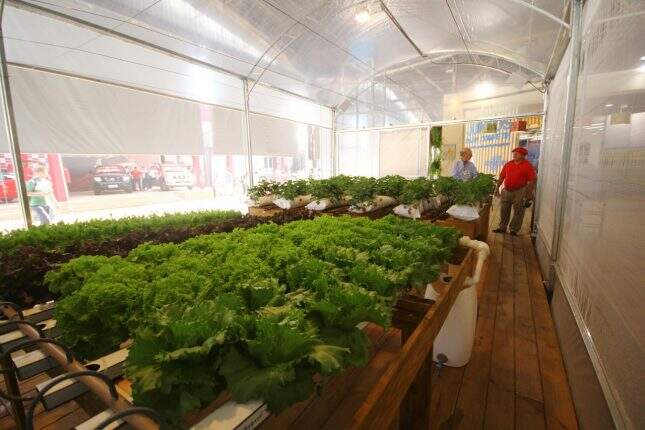 Estufa com produção de alimentos hidropônicos no espaço Juntos para Competir na 38ª Expointer. FOTO: LUCAS UEBEL