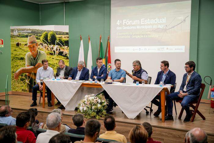 Foto: Divulgação/EmaterPrefeitos, secretários e servidores estiveram reunidos no 4º Fórum Estadual dos Gestores Municipais do Agro, evento promovido pela Famurs na quarta-feira (12), na Expodireto Cotrijal em Não-Me-Toque (RS). A edição deste ano trabalhou a temática “o aumento da produtividade é o caminho – irrigação é a solução”.