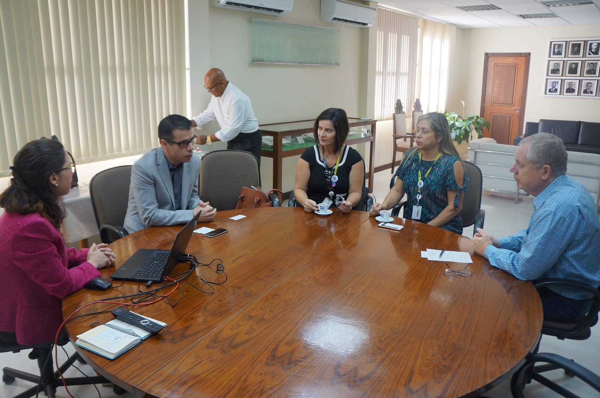 O diretor da Faculdade Estácio do Rio Grande do Sul, Luciano Blumentritt juntamente com a coordenadora de curso de Administração Marilise Bau e a coordenadora do Núcleo de Prática Jurídica (NPJ) da instituição, Rochele Andrade estiveram na Justiça Militar do Estado do Rio Grande do Sul em reunião de aproximação com o juiz-presidente do TJM, Cel. Paulo Roberto Mendes Rodrigues e a bibliotecária que atua na Justiça Militar, Francine Feldens.