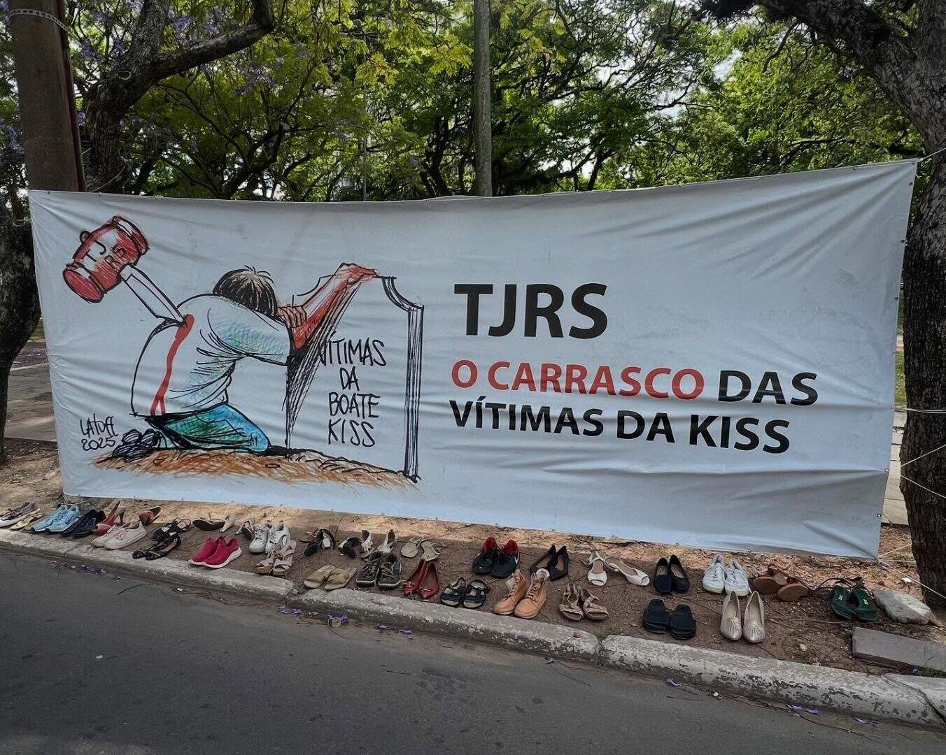 Um grupo de aproximadamente 30 integrantes da Associação dos Familiares de Vítimas e Sobreviventes da Tragédia de Santa Maria (AVTSM) realizaram nessa segunda-feira (27) um protesto em frente ao Tribunal de Justiça do Rio Grande Sul (TJRS), em Porto Alegre. O alvo foi a decisão que em agosto reduziu as sentenças dos quatro réus no processo do incêndio causador de 242 mortes na boate Kiss, há quase 13 anos.