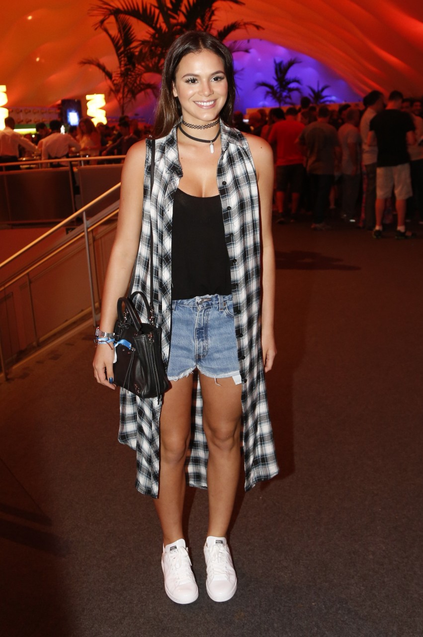 Tainá Müller, que está com os cabelos loiros, usou uma das combinações mais vistas no festival: blusa, shortinho e tênis (de oncinha). A bela optou pelo batom vermelho e chamou a atenção.