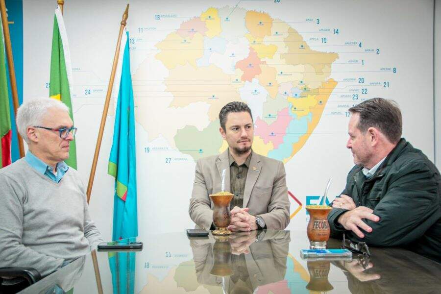 Foto: Guilherme PedrottiA distribuição de donativos aos afetados pelas enchentes e as restrições impostas neste período em virtude da legislação eleitoral pautaram a reunião entre o presidente da Federação das Associações de Municípios do Rio Grande do Sul (Famurs) e prefeito de Barra do Rio Azul, Marcelo Arruda; o procurador-geral de Justiça, Alexandre Saltz, e o secretário de Desenvolvimento Rural do RS, Ronaldo Santini, realizada na sede da Famurs na quarta-feira (29).