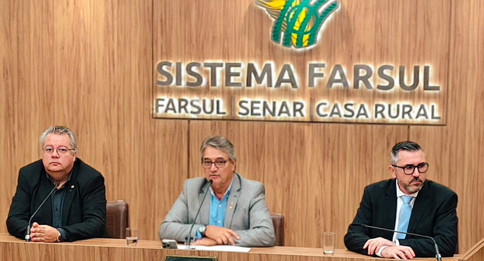 A coletiva contou com as apresentações de Domingos Velho Lopes (Farsu), Gedeão Pereira (CNA) e Antônio da Luz (economista).