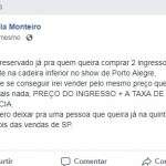 Os ingressos físicos para o show de Sandy e Junior em Porto Alegre se esgotaram no fim da tarde desta sexta-feira (5). Os fãs que não conseguiram a compra vão ‘ter que rebolar’ pra assistir a dupla na Arena do Grêmio, no dia 21 de setembro. No evento organizado no Facebook sobre a atração, os interessados já buscam alternativas, como comprar entradas para outro estado, na tentativa de trocar com alguém que tenha feito o mesmo. Veja: