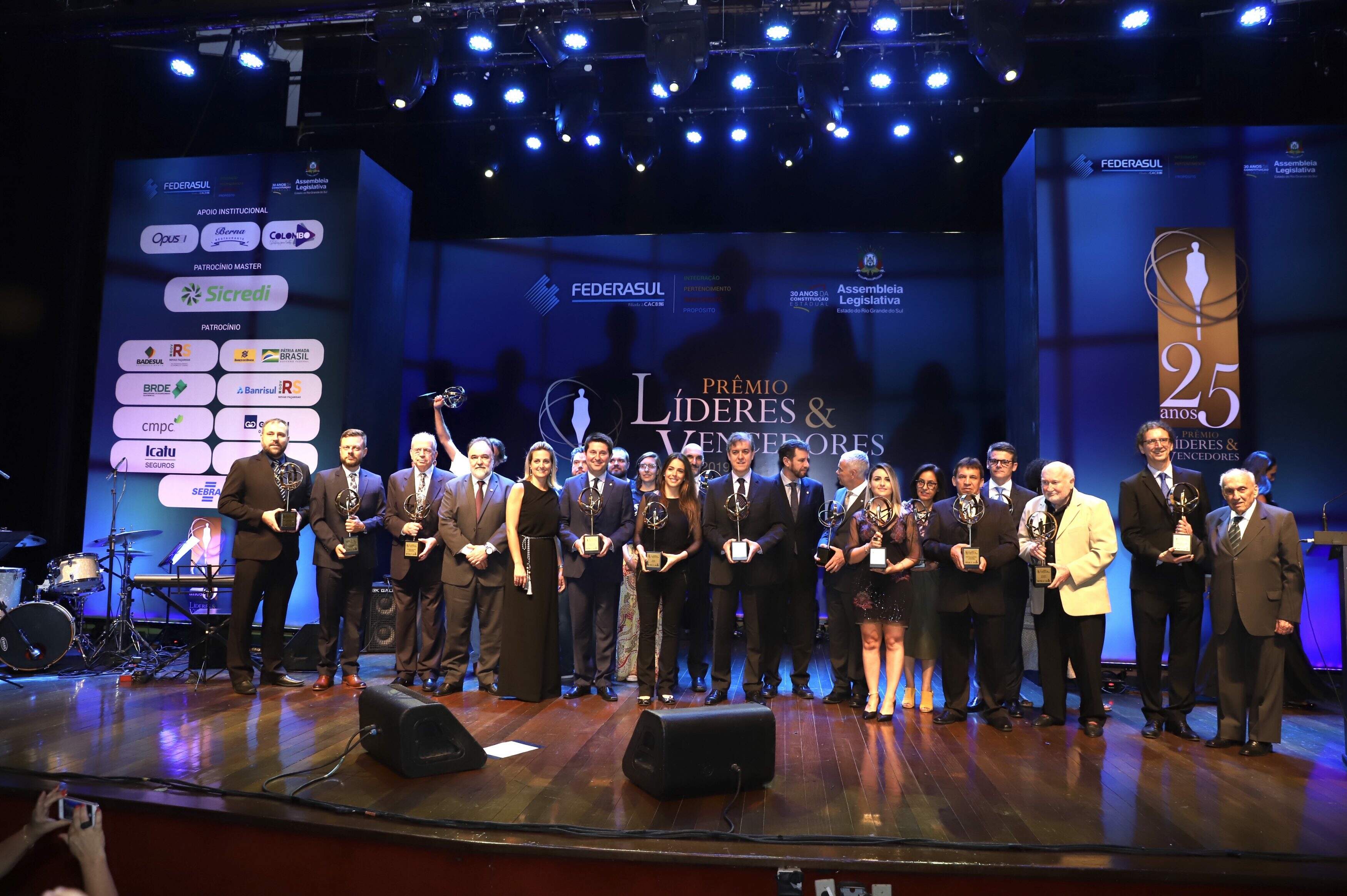 Os presidente da Federasul (Federação de Entidades Empresariais do Rio Grande do Sul) Simone Leite, e da AL (Assembleia Legislativa), Luis Augusto Lara, entregaram a estatueta Magis aos premiados, da edição 2019, do Prêmio Líderes & Vencedores. A cerimônia aconteceu na noite da última terça-feira (19), no Teatro Dante Barone, na Assembleia.
