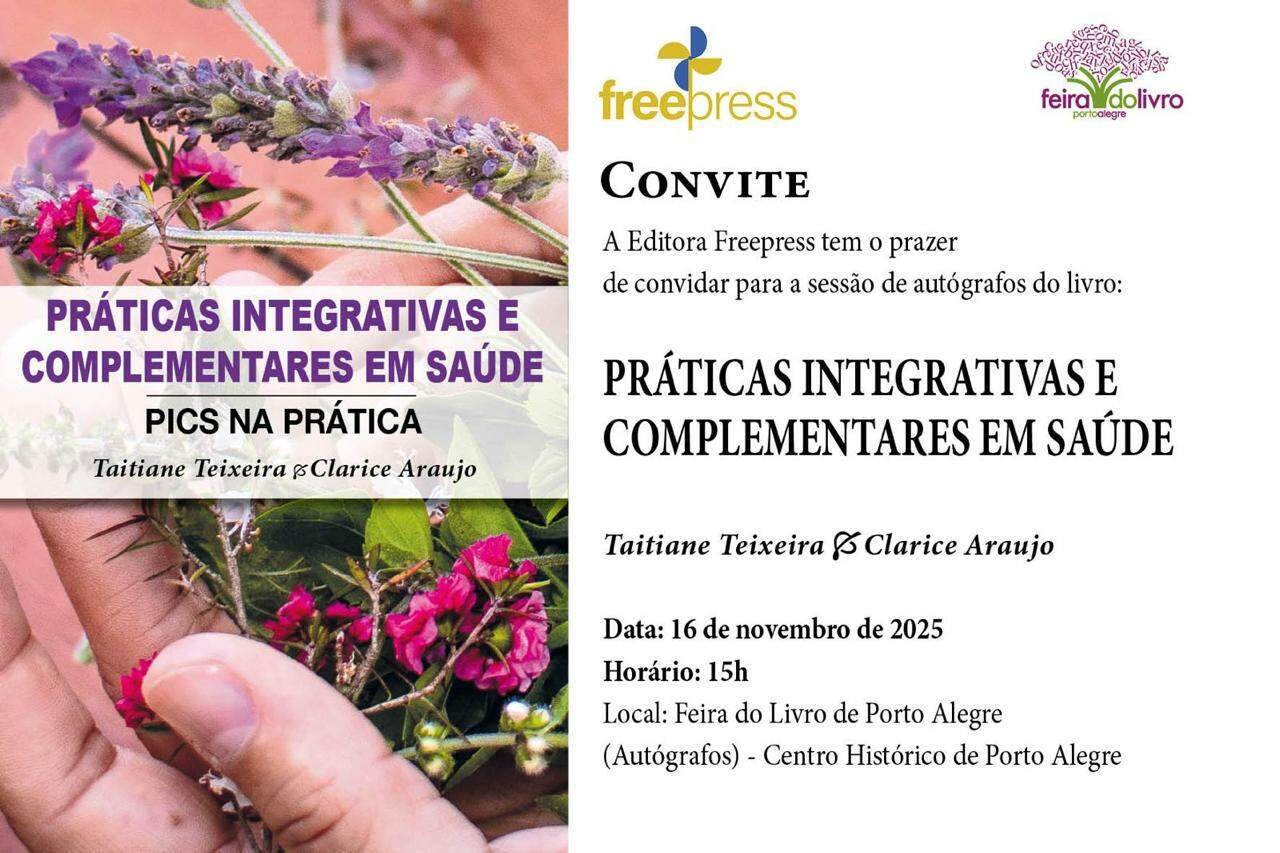 Foto: DivulgaçãoA 71ª Feira do Livro de Porto Alegre será palco, no próximo dia 16 de novembro, às 15 horas, do lançamento da obra Práticas Integrativas e Complementares em Saúde (Editora Free Press), escrita por Tatiane Teixeira e Clarice Araújo. O livro será apresentado durante a sessão coletiva de autógrafos na Praça da Alfândega, no Centro Histórico da Capital gaúcha.