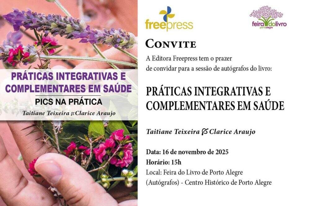 A 71ª Feira do Livro de Porto Alegre será palco, no próximo dia 16 de novembro, às 15 horas, do lançamento da obra Práticas Integrativas e Complementares em Saúde (Editora Free Press), escrita por Tatiane Teixeira e Clarice Araújo. O livro será apresentado durante a sessão coletiva de autógrafos na Praça da Alfândega, no Centro Histórico da Capital gaúcha.