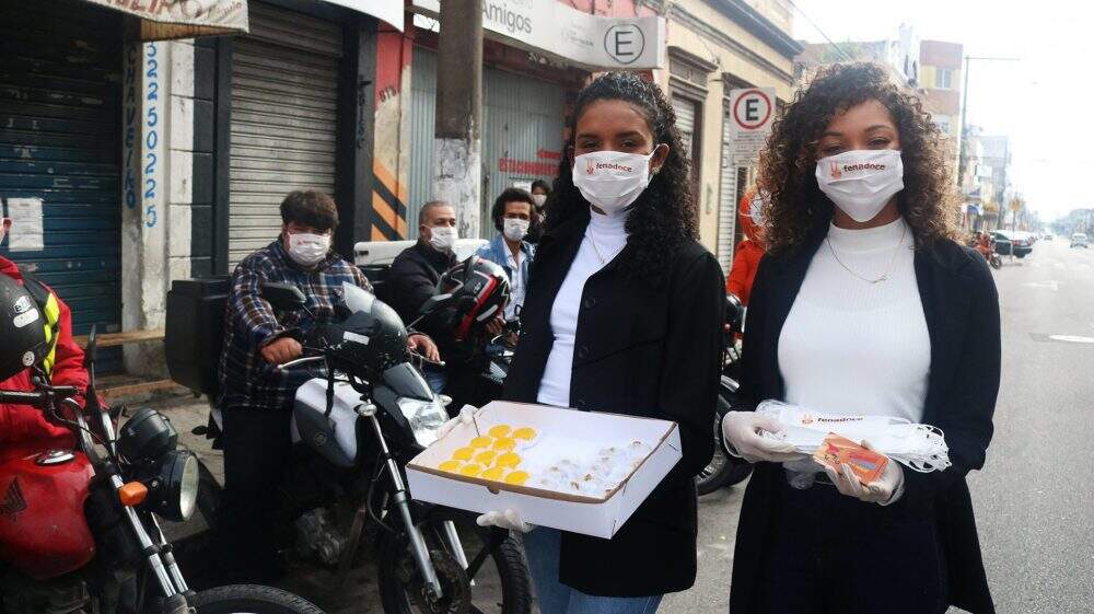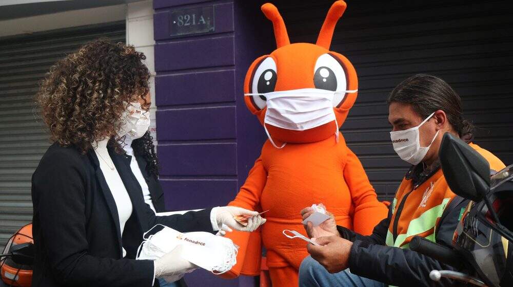 No último final de semana, os profissionais entregadores(motoboys) de Pelotas receberam cerca de mil máscaras de proteção facial e puderam degustar alguns dos 200 doces distribuídos pela Corte da Fenadoce 2020 e a mascote da feira, a Formiga. Para os responsáveis pela iniciativa, estes profissionais colaboram fortemente para que o comércio mantenha parte do seu funcionamento, através das telentregas.