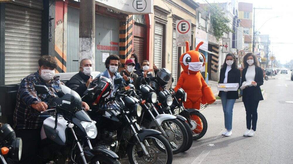 No último final de semana, os profissionais entregadores(motoboys) de Pelotas receberam cerca de mil máscaras de proteção facial e puderam degustar alguns dos 200 doces distribuídos pela Corte da Fenadoce 2020 e a mascote da feira, a Formiga. Para os responsáveis pela iniciativa, estes profissionais colaboram fortemente para que o comércio mantenha parte do seu funcionamento, através das telentregas.
