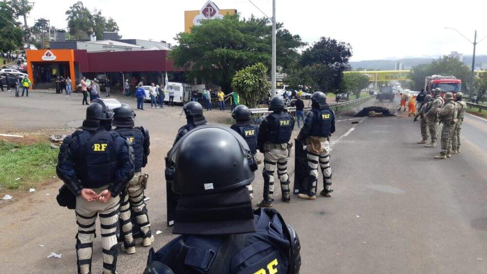 “A situação é dinâmica, podendo se alterar a qualquer momento”, alertou a PRF. Na manhã de terça-feira (1º), em cumprimento a uma decisão do STF (Supremo Tribunal Federal), a Tropa de Choque da corporação começou a retirar os manifestantes das rodovias federais gaúchas. Foram utilizadas bombas de gás lacrimogêneo e máquinas para limpar a pista.
