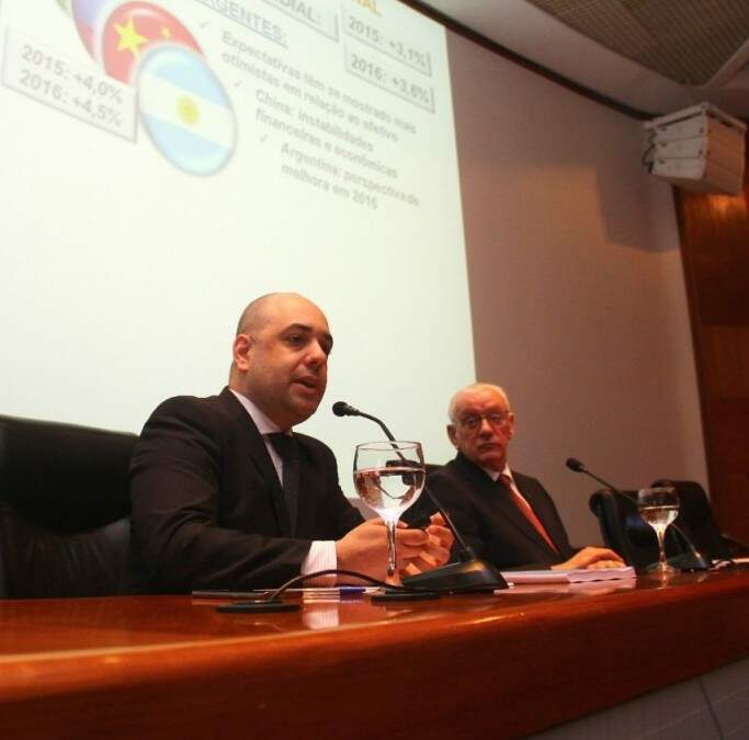 Os cenários para 2016 foram construídos tendo como base a expectativa de uma crise crônica e longa com muita instabilidade política. No cenário base, a tendência é que a economia brasileira amenize o ritmo de queda, na medida em que a atividade atingiu mínimas históricas. A recessão permanece na maior parte do ano, mas a previsão de retração de 2,5% no PIB é menos intensa na comparação com 2015 (-3,5%). Nesse cenário, o consumo das famílias tende a manter a trajetória de queda, acompanhando o aumento do desemprego e a retração na renda real. Além disso, em períodos de crise fiscal, dada a forte rigidez imposta sobre o orçamento público, os investimentos são ainda mais penalizados. De acordo com Müller, após encontros com investidores alemães e japoneses, estes esperam apenas uma solução e um desfecho na situação política do Brasil para voltar a acreditar e investir no País.