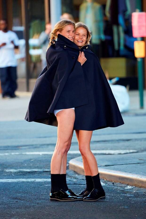 Para se proteger do frio e se cobrir entre um clique e outro, as modelos utilizaram uma capa. (foto: reprodução)
