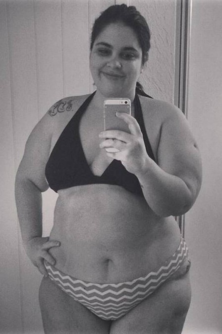 Manu, mesmo fora dos padrões convencionais, aparece em uma foto de biquíni, sem pudor. “Delícia”, escreveu um seguidor.
