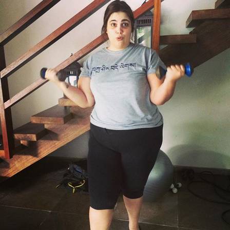 Em sua conta no Instagram, entre uma e outra foto de seus trabalhos como atriz, chamam a atenção também suas fotos que mostram seu treinamento e dieta para perder peso, sempre com bom humor.