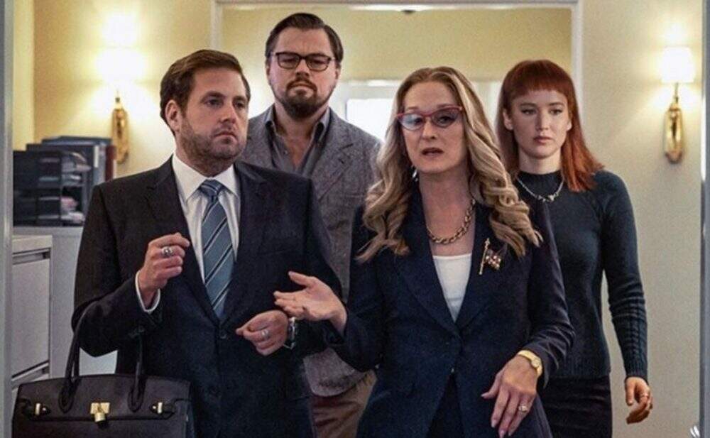 McKay, autor também de A Grande Aposta e Vice, investe fundo nessa chave da sátira. Lúcido, não desconhece que políticos disruptivos, além da manipulação das massas, contam sempre com a cumplicidade de setores influentes da sociedade para pôr em prática seus projetos de poder. Um deles é Peter Isherwell (Mark Rylance), um empresário poderoso do ramo de celulares, que descobre o potencial econômico do meteoro e interfere nos planos de salvação do planeta. O próprio Dr. Randall Mindy (DiCaprio) não é inocente. Deslumbra-se com a fama instantânea e tira o foco da emergência para concentrá-lo nos holofotes e na exuberante Brie Evantee (Blanchett).
