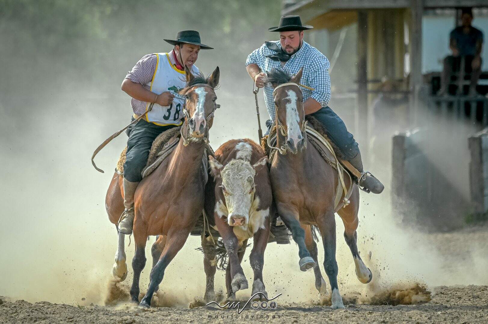 A Paleteada é uma das provas que mais traduzem a essência da lida campeira. Realizada em duplas, a modalidade exige que dois ginetes conduzam um novilho por um percurso determinado, mantendo-o entre os cavalos em velocidade controlada. São avaliadas rusticidade, força, técnica e, principalmente, a sintonia entre cavalo e cavaleiro — uma parceria forjada no campo e lapidada na pista.