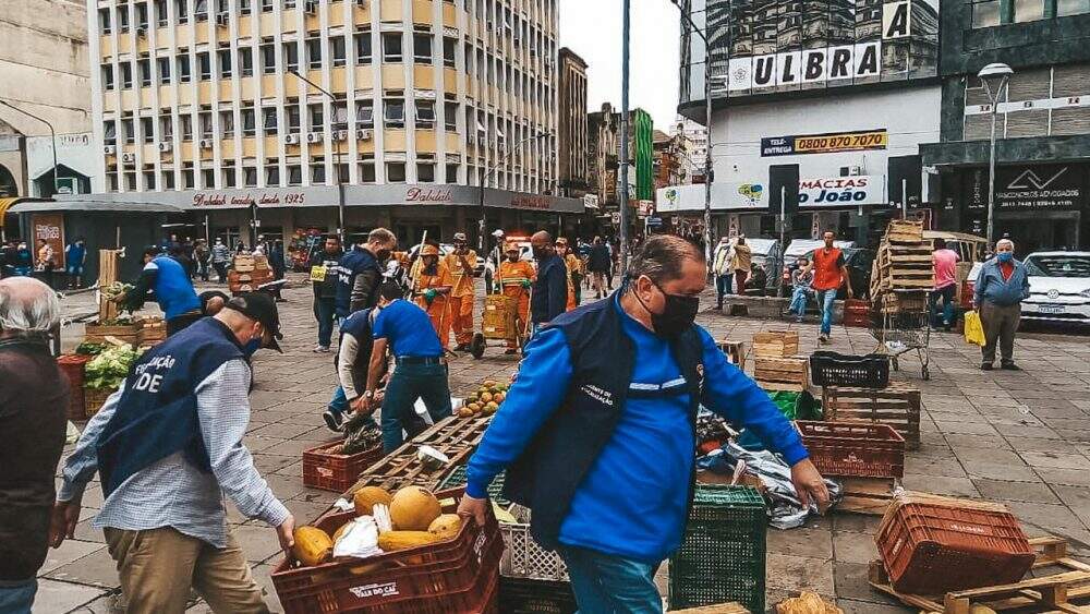 Fiscais da prefeitura de Porto Alegre apreenderam, na manhã desta sexta-feira (11), duas toneladas de frutas e verduras sem procedência durante uma operação contra o comércio ambulante irregular no Centro Histórico da Capital.