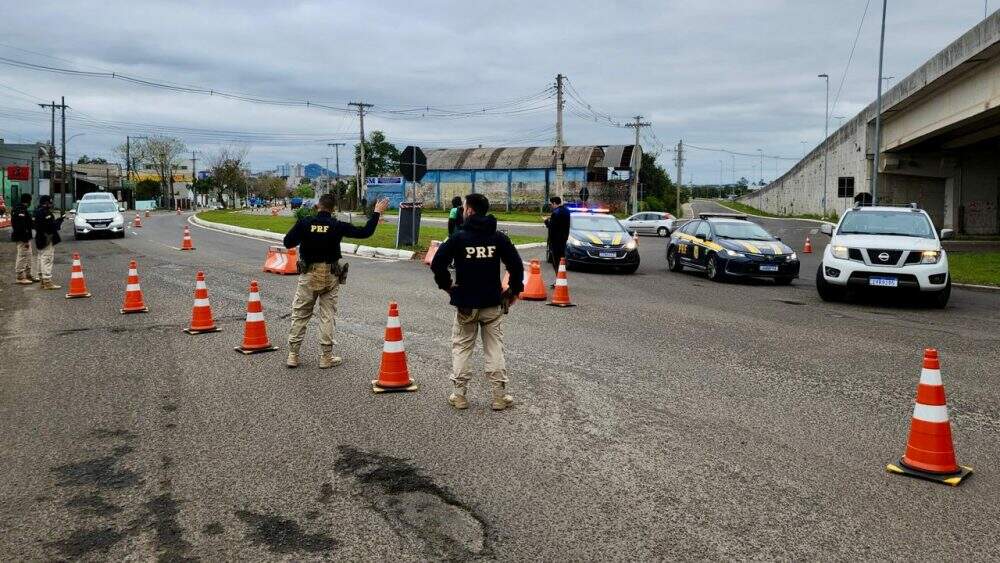 Policiais rodoviários federais que estavam realizando o controle em um dos pontos de bloqueio para a Maratona de Santa Maria avistaram uma dupla em uma motocicleta que havia invadido o setor dos atletas. Antes que a prova fosse atrapalhada ou até mesmo um atleta atropelado, os PRFs interceptaram o veículo.