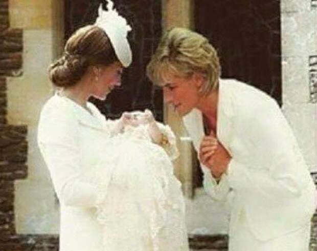 Uma montagem que está circulando na internet mostra a princesa Diana, morta em um acidente de carro em 1997, no batizado da Princesa Charlotte, filha de Kate Middleton e do Príncipe William. Na imagem, Lady Di aparece sorridente no batizado da netinha, que aconteceu neste ano na Inglaterra.
